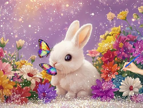 Peinture Numero Adulte Lapin Peinture Numero Enfant Débutants Fleurs Loisirs Créatifs Adultes Kits DIY Paint by Numbers Acrylique Toile Tableau a Peindre Kits Cadeau Femme Decoration Noel 40x30cm W-93