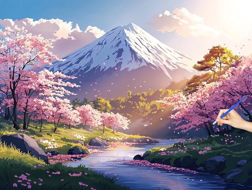 Peinture Numero Adulte Japon Peinture Numero Enfant Débutants Montagne Loisirs Créatifs Adultes Kits, DIY Paint by Numbers Acrylique Toile Tableau a Peindre Kits Cadeau Decoration Noel 50x40cm X-16