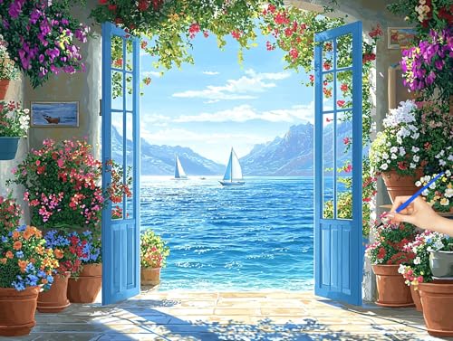 Peinture Numero Adulte Paysage Peinture Numero Enfant Débutants Océan Loisirs Créatifs Adultes Kits, DIY Paint by Numbers Acrylique Toile Tableau a Peindre Kits Cadeau Decoration Noel 50x40cm X-02