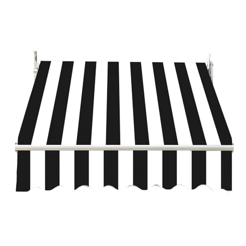 TYHAYJYK Toile de Remplacement pour Store banne rétractable Manuel 300 x 200 cm, Tissu de Remplacement, Motif rayé Noir et Blanc, Pare-Soleil pour terrasse (sans Cadre), auvent de terrasse