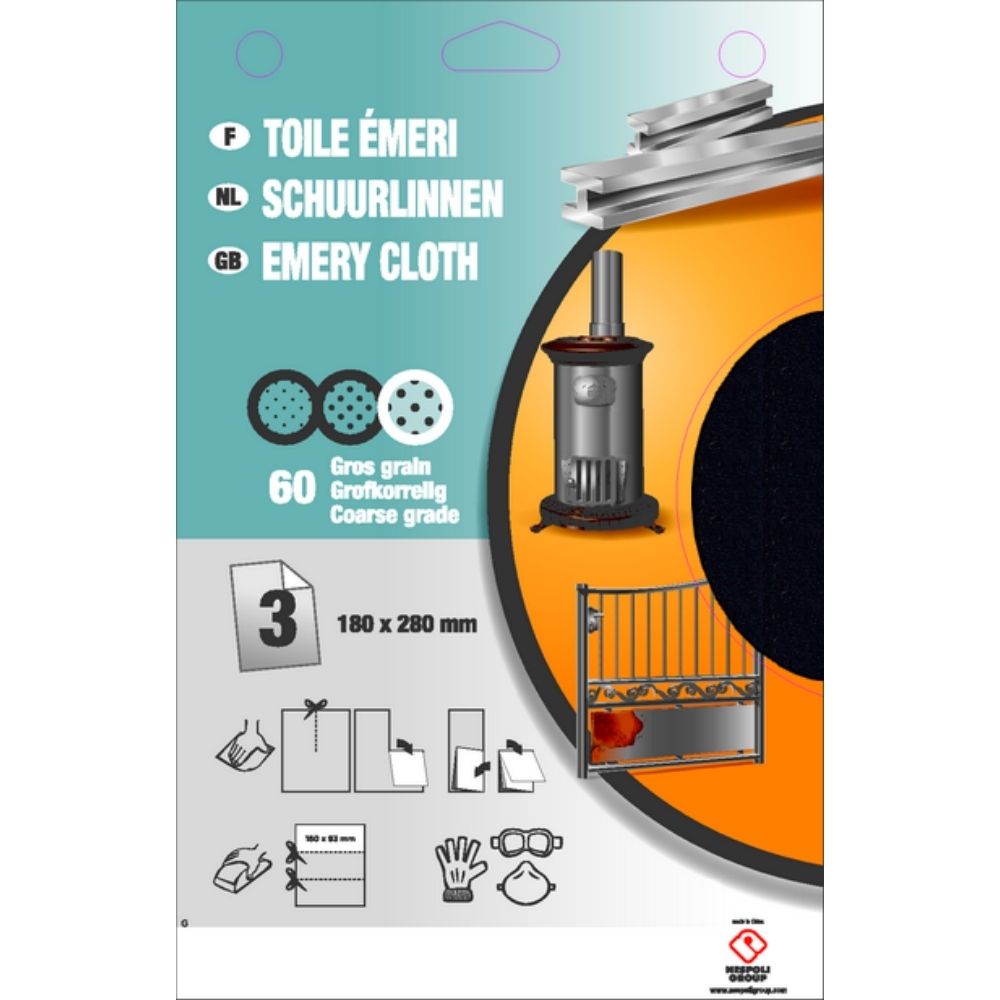 Toile émeri moyen SAVY - Lot de 3 - Ponçage et polissage des métaux
