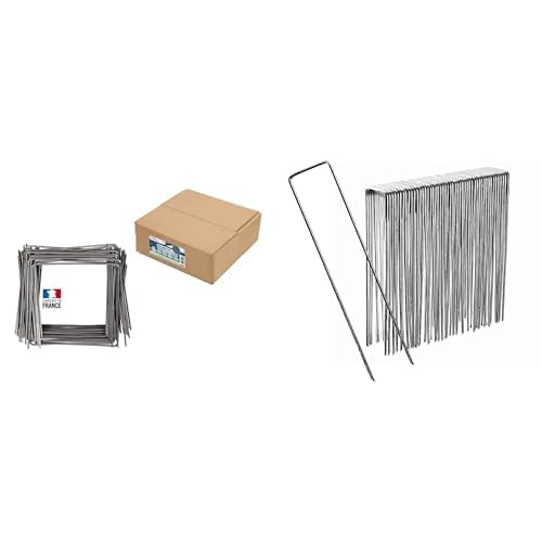 Flandria Lot de 100 Agrafes de paillage Ø3,7mm biseautées Acier cranté 20x20x20cm & 50 Agrafes Fixation Acier galvanisé H17cm L3.5cm 3mm - Piquet pour Fixer Tuyau, bâche, Filet, Toile Jardin