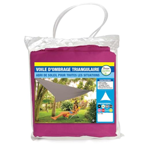 TERRE JARDIN Voile d'Ombrage Triangulaire Imperméable Anti-UV - Toile Ombrage Extérieur pour Terrasse, Jardin, Pergola et Balcon - Ombrière Résistante avec Cordes - 3.6 mètres - Rose