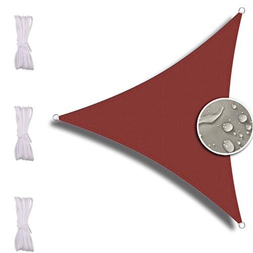 Toile Ombrage Triangulaire Triangle Imperméable pour Patio avec Corde Libre Voile d'ombrage ajourée pour Patio Jardin terrasse extérieur Piscine Rouge Rouille 3x3x4.3m
