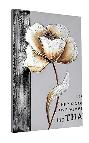 Tableau Décoration Murale – Fleur coquelicot Ton Argent -Tableaux Décoratif Moderne- Peinture sur Toile à la Main 40x60cm Cadeau Original pour Homme ou Femme Cadeaux Anniversaire Noel fêtes des mères
