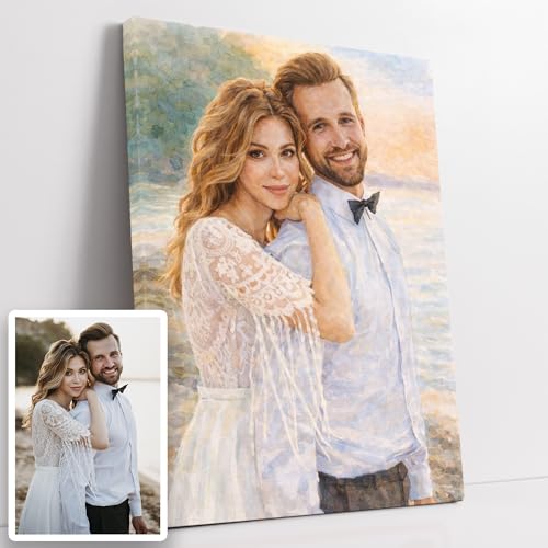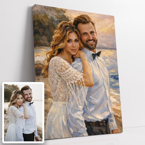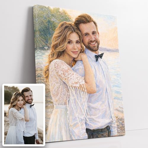 Portrait personnalisé photo artistique style aquarelle pop art peinture à l’huile dessin crayon Poster Toile Plexiglas ou Tableau format paysage – Cadeau personnalisé Noël (Peinture à l'huile)