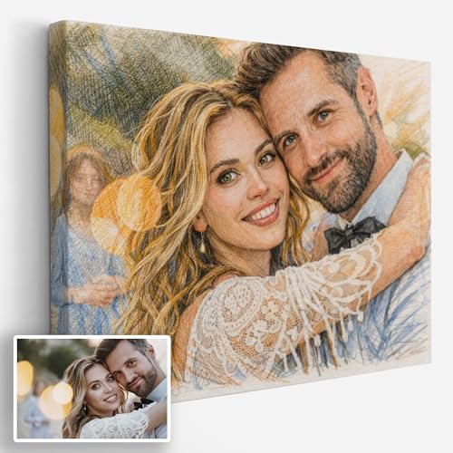 Portrait personnalisé photo artistique style aquarelle pop art peinture à l’huile dessin crayon Poster Toile Plexiglas ou Tableau – Cadeau anniversaire mariage famille (Crayon de couleur 2)