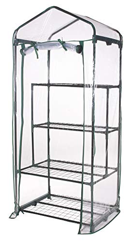 VERDELOOK - Serre avec 2+2 étagères et toile PVC transparente avec ouverture à charnière, 69x49x157 cm, serre de jardin et de balcon, pour la protection des plantes, pour le jardinage, métal peint