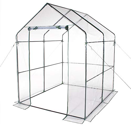 VERDELOOK | Serre de jardin sans étagères avec toile PVC transparente, cadre métallique, 143x143x195 cm, pour la protection des plantes, le jardinage, résistante, ouverture par fermeture à glissière