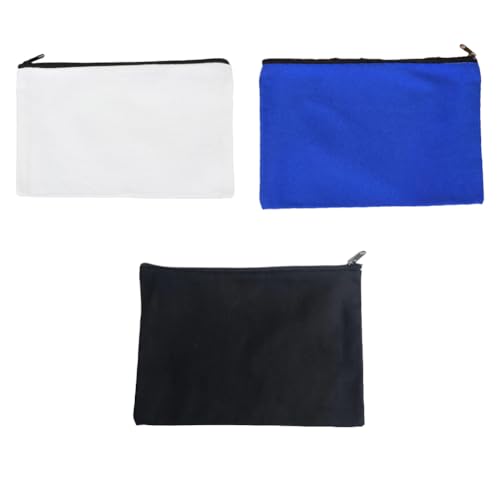 Lot de 3 trousses à crayons en toile vierge - Avec fermeture éclair - Petit sac à peindre - Sac portable - Trousse à crayons - Pour travaux manuels, rangement, stylos, produits cosmétiques, bleu, 21