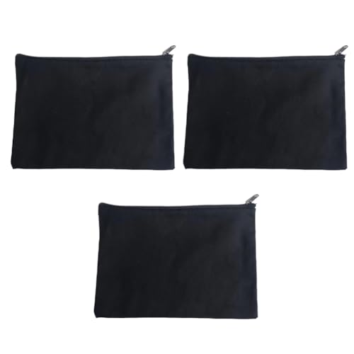 Lot de 3 trousses à crayons en toile vierge - Avec fermeture éclair - Petit sac à peindre - Sac portable - Trousse à crayons - Pour travaux manuels, rangement, stylos, produits cosmétiques, Noir , 21