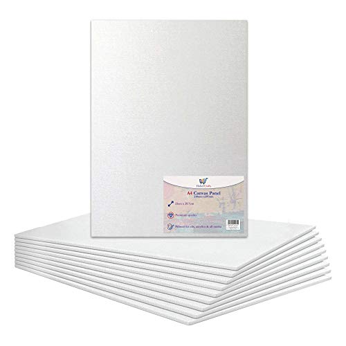 Lot de 10 panneaux de toile vierge A4 100% coton pour peinture à l'huile, peinture acrylique, supports mixtes, sans acide, blanc (format A4 – 210 x 297 mm)