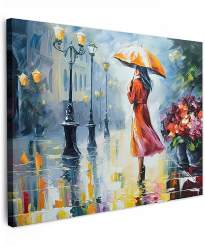 MuchoWow© Impressions sur Toile 120x80 cm Deco Tableau Murale Decoration Salon Peinture Tableaux Chambre Toiles Maison Peinture à l'huile - Parapluie - Femme - Rue - Art