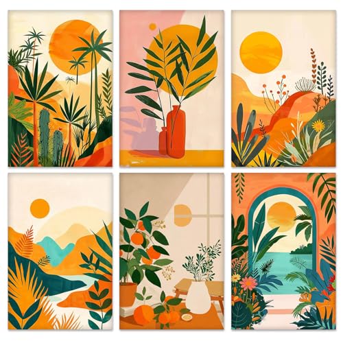 QENSPE Lot de 6 Kit Peinture par Numéros, Toiles Tendues Peinture Acrylique pour Adultes, Débutants et Étudiants, Fournitures pour Soirées Dessin, Paysage Plantes (20x30 cm)
