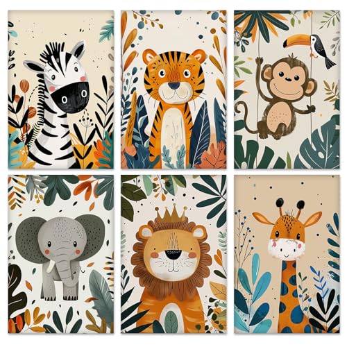 QENSPE Lot de 6 Kit Peinture par Numéros, Toiles Tendues Peinture Acrylique pour Adultes, Débutants et Étudiants, Fournitures pour Soirées Dessin, Animaux avec Plantes (20x30 cm)
