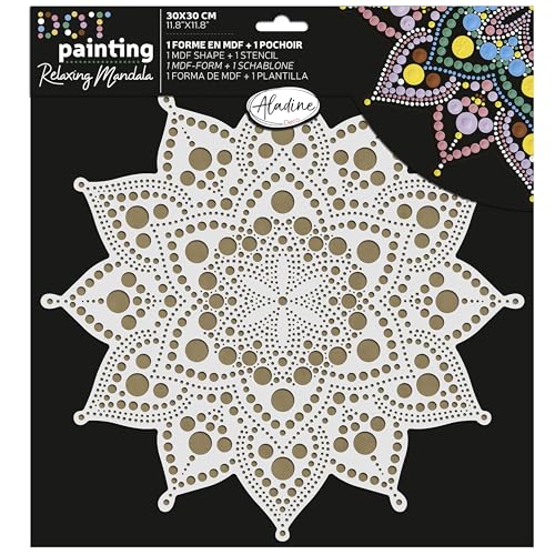 Aladine - Kit Pochoir & Support Mandala 30 cm - Pour Créer Mandalas en Dot Painting - Peinture sur Galet, Bois, Tissus, Toiles - Dotting Peinture Points - Loisirs Créatifs - 85507