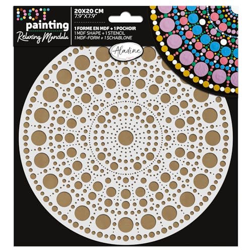 Aladine - Kit Pochoir & Support Mandala 20 cm - Pour Créer Mandalas en Dot Painting - Peinture sur Galet, Bois, Tissus, Toiles - Dotting Peinture Points - Loisirs Créatifs - 85502