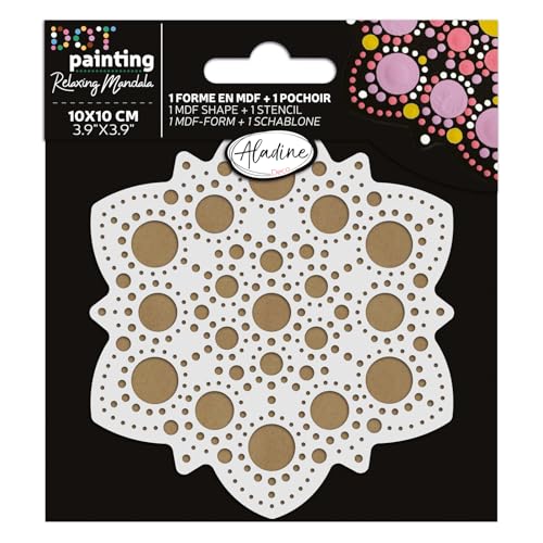 Aladine - Kit Pochoir & Support Mandala 10 cm - Pour Créer Mandalas en Dot Painting - Peinture sur Galet, Bois, Tissus, Toiles - Dotting Peinture Points - Loisirs Créatifs - 85500