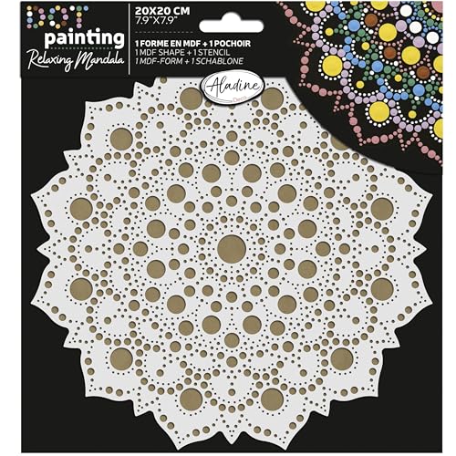Aladine - Kit Pochoir & Support Mandala 20 cm - Pour Créer Mandalas en Dot Painting - Peinture sur Galet, Bois, Tissus, Toiles - Dotting Peinture Points - Loisirs Créatifs - 85501