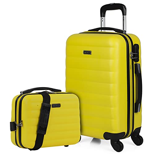 ITACA - Valise Cabine Rigide Légère à Roulette 4 Roues Pivotantes avec Cadenas à Combinaison Extensible. Bagage Cabine Idéal pour Voyager en Avion Petite Valise Compacte Avec trousse de toilett, Jaune