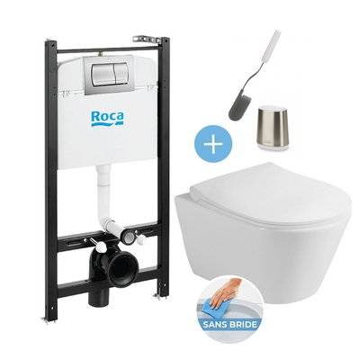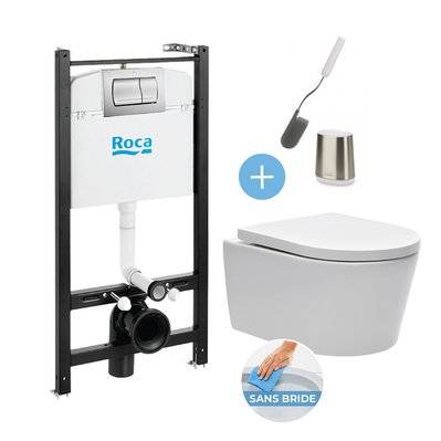 Roca Pack Bâti-support Active + Lucco WC sans bride et fixations invisibles plaque chrome mat brosse de toilette