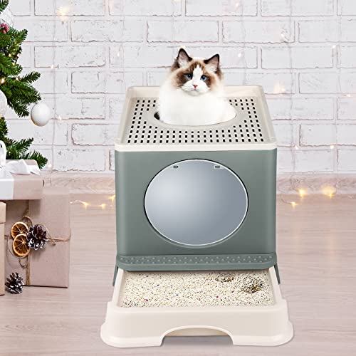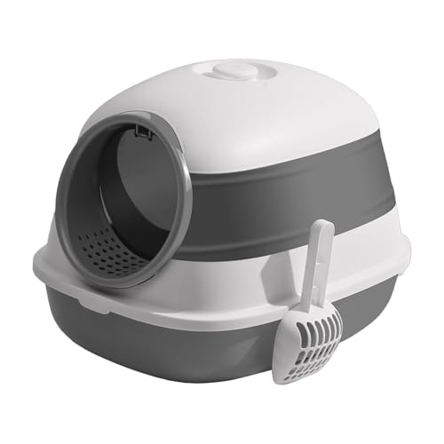 Bac à Litière pour Chaton avec Couvercle,Toilettes pour Chats,Litiere pour Chat Fermée pour avec Pelle,Plateau Amovible,2 Ouvertures,48 * 39 * 34cm (Gris)