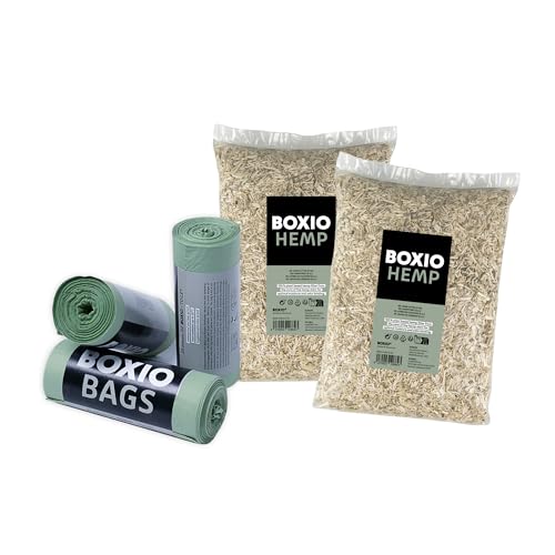 BOXIO - Refill Pack : 2X litière Chanvre, 3X Sacs Bio 10L – Accessoires pour Toilettes sèches, Compost ou séparation, sciure, Sacs Bio. Idéal pour Le Camping, Jardin ou en Voyage.