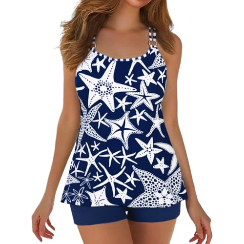 Women Swimwear,Tondeuse Bikini Femme Maillot,Maillot de Bain Deux pièces : Haut Tankini coloré, Bas Jupe et Poches (Blue, XL)
