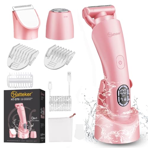 Hatteker Rasoir Electrique Femme Tondeuse Femme Intime Bikini Affichage LED étanche IPX7 3 en 1(rose)