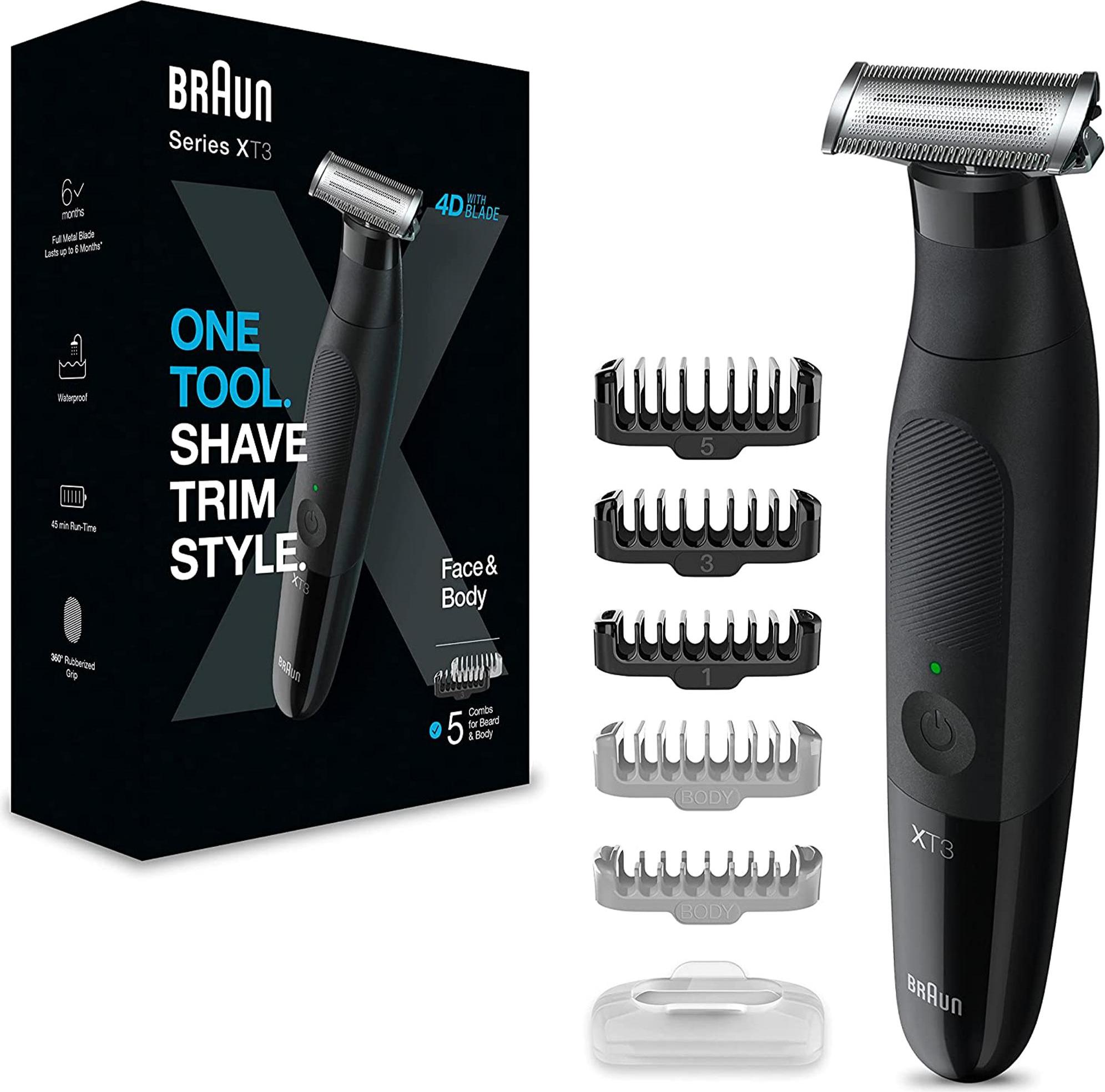 Braun series xt5 rasoir électrique et tondeuse hybride homme, pour visage+corps, lame durable et pochette de voyage noir, xt5200