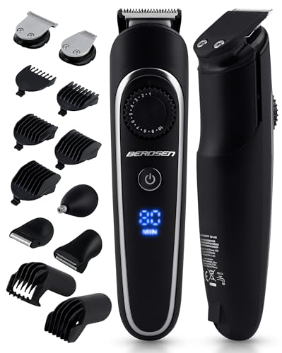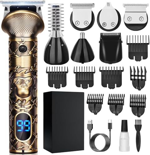 YIDON Tondeuse Cheveux/Barbe Homme Professionnell, Finition Sans Fil Rasoir Tondeuse Avec Affichage et Type-C USB Charge, Tondeuses Tailler/Contour/Nez/Corps Tous en 1, Tondeuses Cadeau Kit pour Homme