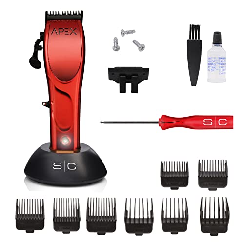 Tondeuse à Cheveux Professionnelle Homme Stylecraft Apex by Gamma Più, Clipper avec Moteur Rotatif, 150 Minutes d'autonomie sans fil, Lame Réglable, 8 Peignes, Support Lame, Corps en Métal
