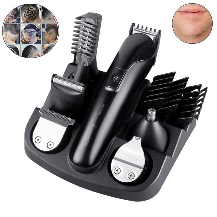 Tondeuse électrique 6 en 1 Rasoir Homme Cheveux Barbe Rasage Poils du Corps Nez Oreille Professionnelle Visage Coupe-Soins Ensemble
