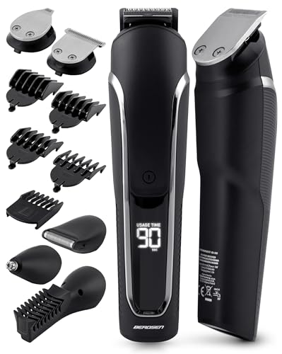 BarberBoss Tondeuses à cheveux et à barbe pour homme - Kit de toilettage avec tondeuse nez et oreilles, lame en céramique, cadran de précision, 4 peignes, étanche, tondeuse corps homme