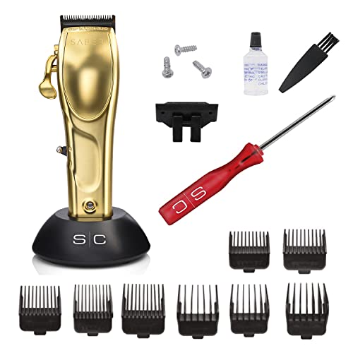 Tondeuse à Cheveux Professionnelle Homme Stylecraft Saber by Gamma Più, Clipper avec Moteur Brushless 6 Heures d'autonomie sans fil, Lame Réglable, 8 Peignes, Support Lame, Corps en Métal