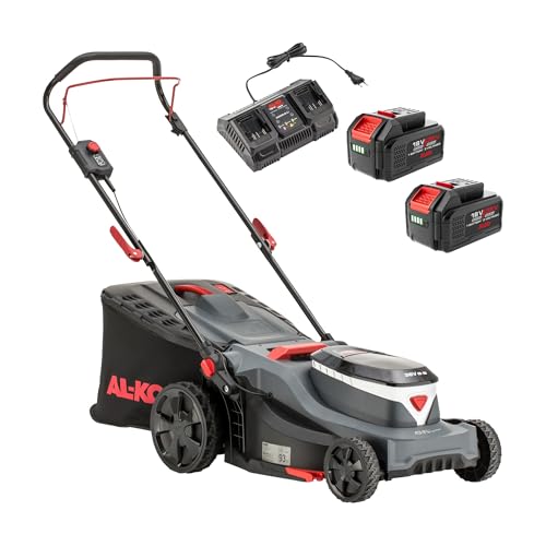 AL-KO Tondeuse électrique sans Fil 3.82 Li Easy, Largeur 38 cm, pour 2 Batteries 18 V Li-ION (2X Batterie et Chargeur inclu), pour gardin à 300 m², réglage Central de la Hauteur de Coupe en 6 Fois