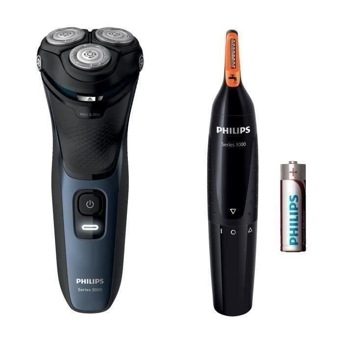 Rasoir électrique PHILIPS S3134/57 - 100% étanche - Tondeuse nez/oreilles - Lames PowerCut
