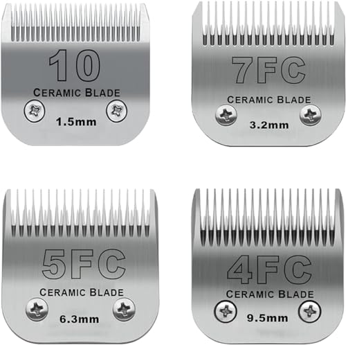 BESTBOMG 4 unité Lame de Rechange pour toilettage de Chiens,Compatible avec Les séries Heiniger/Moser Max45/Andis/Oster A5 Tondeuse pour Chien,Taille 1,5mm-9.5mm Longueur de Coupe (10+7FC+5FC+4FC)