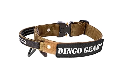 Dingo Gear Collier pour Chien Cobra, Boucle de Sécurité Professionnelle, Poignée Robuste, Étiquette avec Attache de Type Velcro, pour Dressage des Chiens, Tour de Cou 49-59 cm, Coyote Brown (S03131)