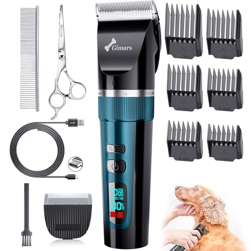 Gimars 6 en 1 Silencieuse Tondeuse Pour Chien Sans Fil 4 Vitesses 7000 U/min, Rechargeable à Faible Bruit Pour Poils d'Animaux Long Epais, Kit De Tondeuse Professionnelle Pour Chiens Et Chats