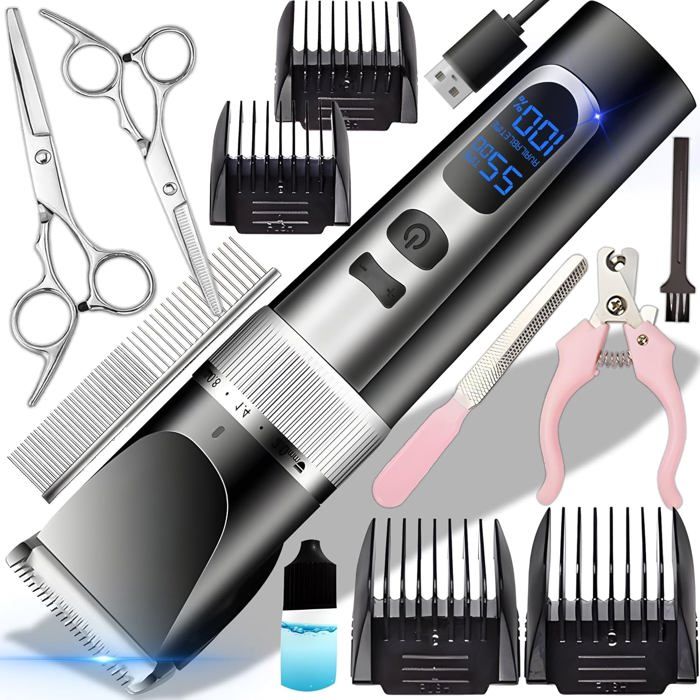 Tondeuse professionnelle pour chien avec écran LCD tondeuse pour chien à poils longs et épais tondeuse sans fil pour chien et cha