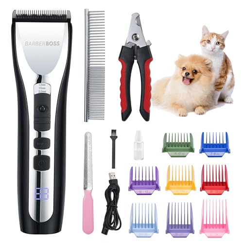 BarberBoss Tondeuse professionnelle à poils épais, kit de toilettage pour chien, tondeuse pour chien sans fil, tondeuse pour chat à poils durs QR-9086