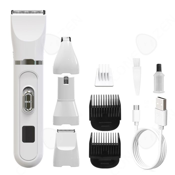 4 en 1 Tondeuse Chien Professionnelle Silencieuse Étanchéité Tondeuse Toilettag Rechargeable pour Chat Autres Animaux Blanc