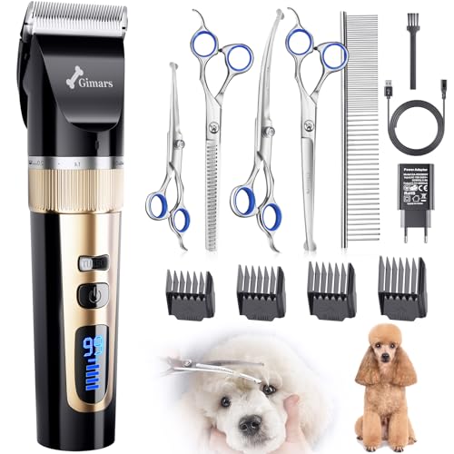 Gimars 6 en 1 Silencieuse Tondeuse Pour Chien Sans Fil 4 Vitesses 7000 U/min, Rechargeable à Faible Bruit Pour Poils d'Animaux Long Epais, Kit De Tondeuse Professionnelle Pour Chiens Et Chats