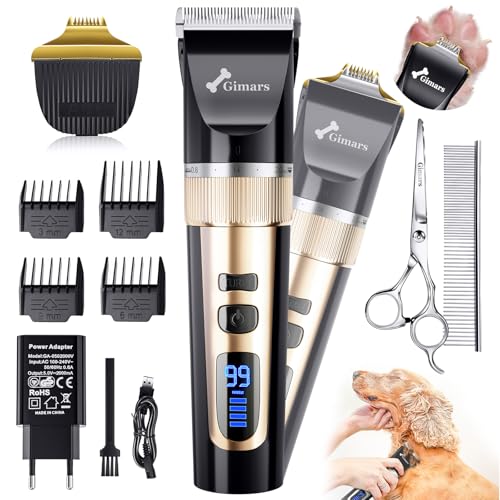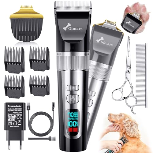Gimars 4 en 1 Tondeuse Pour Chien Sans Fil 7000 U/min Avec Petite Lame De Coupe-Pattes, Rechargeable à Faible Bruit Pour Poils d'Animaux Épais, Kit De Tondeuse Pour Chiens Et Chats