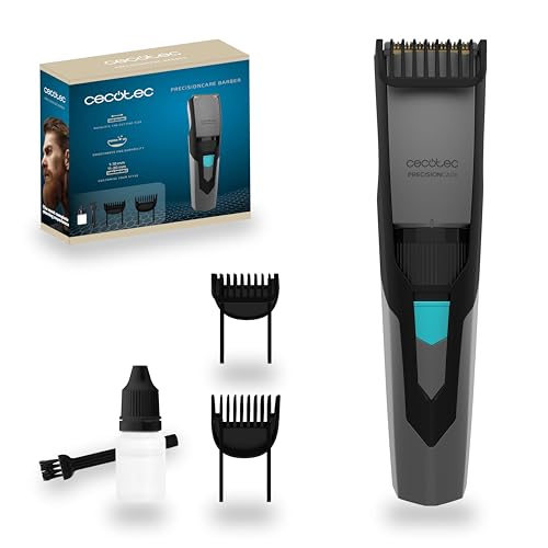 Cecotec Tondeuse à Barbe Sans Fil PrecisionCare Barber. Tondeuse à Batterie avec Lames en Acier Inoxydable, Sabot de 1 à 10 mm et un autre de 11 à 20 mm, Autonomie de 1 heure d'utilisation.