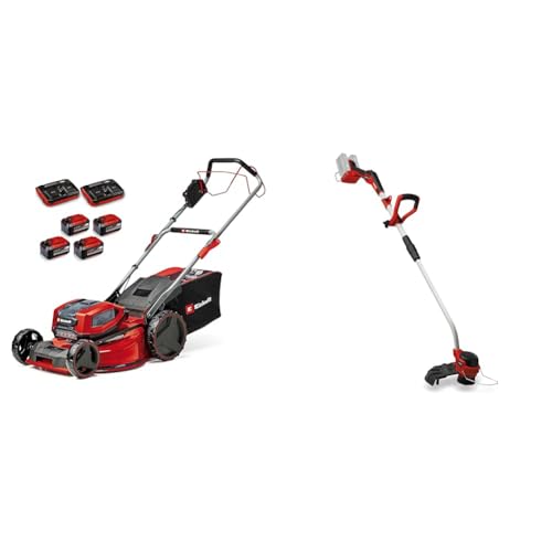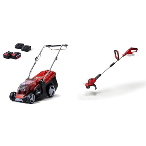 Einhell Tondeuse à Gazon sans Fil GE-CM 36/36 Li (Power X-Change, Moteur sans Charbon,Hauteur de Coupe à 6 Positions, avec 2 Batteries 4 Ah + 2 chargeurs) + Coupe-Bordures sans Fil GE-CT 18/28 Li