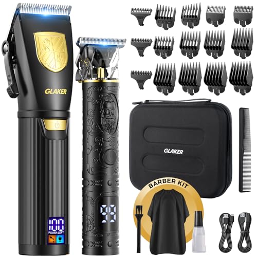 GLAKER Tondeuse Cheveux Hommes Professionnel, Tondeuse Barbe et Cheveux Homme, Tondeuse Barbe Sans Fil, Tondeuse de Finition, Coupe de Cheveux Electriques, Tondeuse à Cheveux Kit Avec Ecran LED