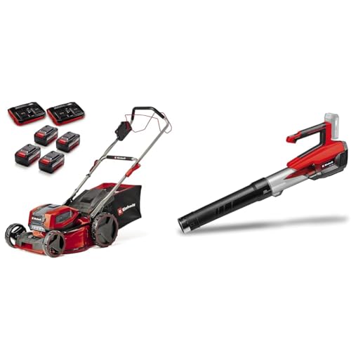 Einhell Professional Tondeuse à Gazon sans Fil GP-CM 36/47S Li BL (4x4,0Ah) Power X-Change (36V, Coupe 47cm, 65L) 4 Batteries 4,0Ah et 2 Chargeurs Doubles + Souffleur sans Fil GP-LB 18/200 Li E