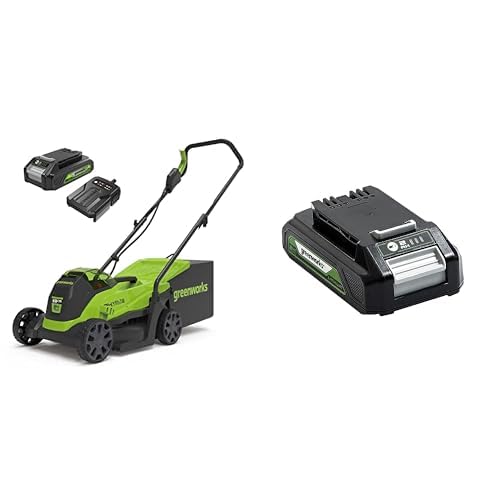 Greenworks G24X2LM36K2X Tondeuse à Gazon sans Fil, Largeur de Coupe 36 cm, Inclus Deux Batteries de 24V (Équivalent 48V) 2Ah et Chargeur Double, Garantie 3 Ans + Lame de Rechange de 35 cm